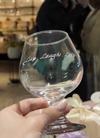 At this intimate San Francisco wedding, I offered both hand-painting and engraving on brandy snifters as personalized guest favors. Guests selected from a curated menu of floral motifs and designs to be painted onto their glasses, along with their choice of engraved text. The result? A table full of one-of-a-kind keepsakes — and a crowd so captivated that my engraving tool never stopped all night.
